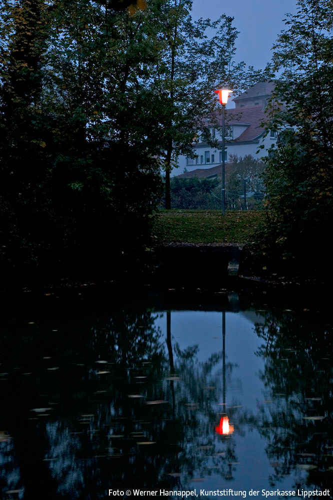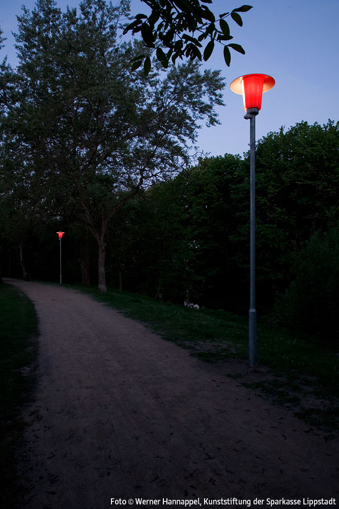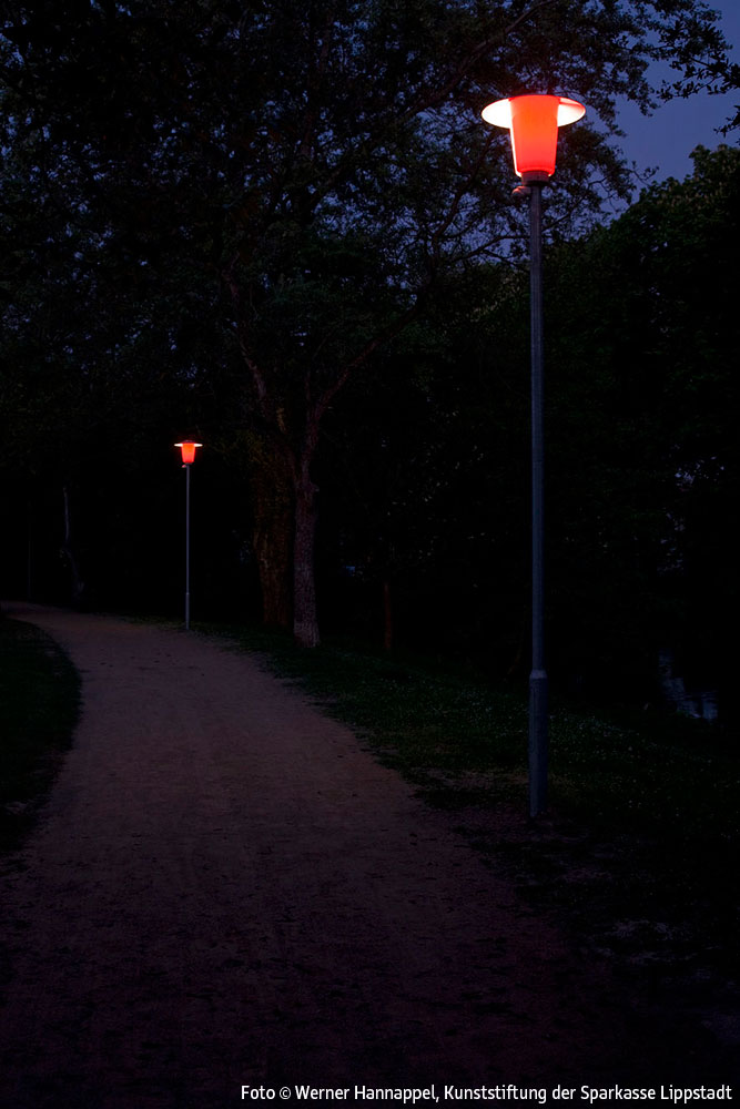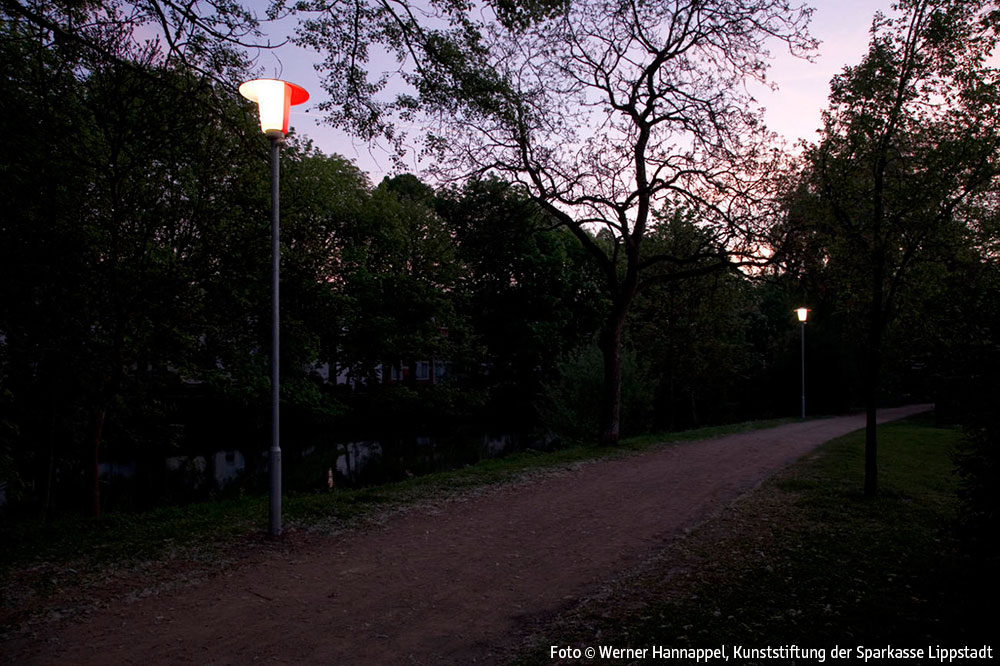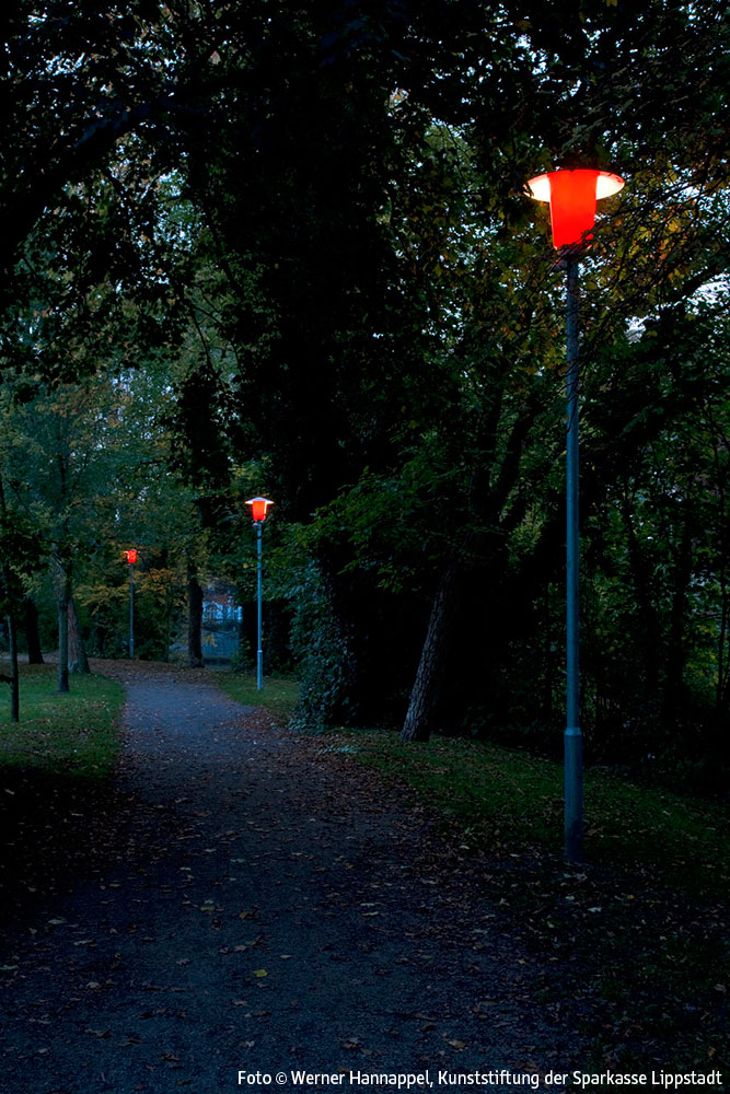 Entlang der Wegstrecke am Schifffahrtskanal zwischen der Brücke am Ostendorf-Gymnasium und der Schleuse Friedrichstraße ist ein Lichtkunstobjekt auf der Grundlage der früher auch in Lippstadt üblichen klassischen Parkbeleuchtung mit Pilzleuchten realisiert worden. Insgesamt wurden 7 solcher Pilzleuchten aufgestellt. Die Leuchten sind so modifiziert worden, dass sie auf einer Hälfte rot, auf der anderen original weiß leuchten.
