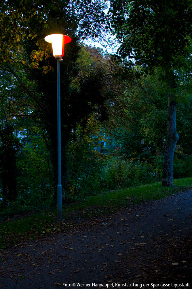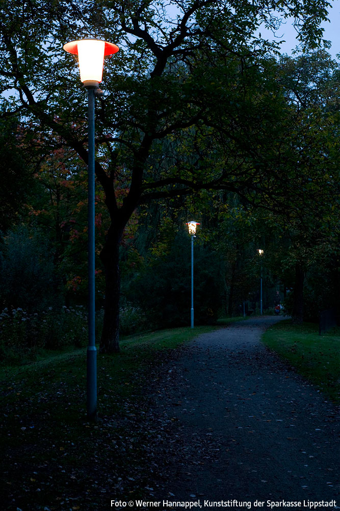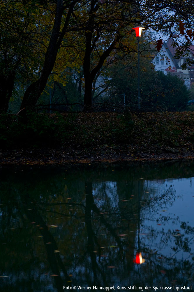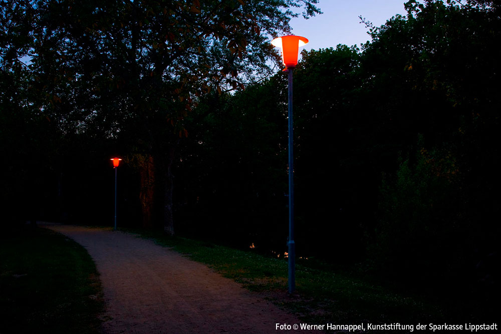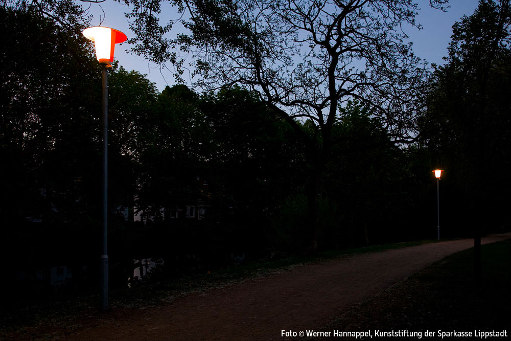 Entlang der Wegstrecke am Schifffahrtskanal zwischen der Brücke am Ostendorf-Gymnasium und der Schleuse Friedrichstraße ist ein Lichtkunstobjekt auf der Grundlage der früher auch in Lippstadt üblichen klassischen Parkbeleuchtung mit Pilzleuchten realisiert worden. Insgesamt wurden 7 solcher Pilzleuchten aufgestellt. Die Leuchten sind so modifiziert worden, dass sie auf einer Hälfte rot, auf der anderen original weiß leuchten.