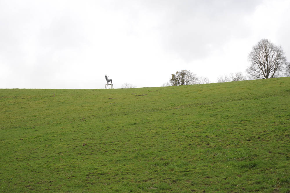 Der „Mann im Hirschgeweih“ kann als Leitmotiv verstanden werden, das durch seinen Standort auf dem oberen Grat einer Weide pathetisch erhöht wird. Sein Hintergrund ist der sich ständig wandelnde Himmel, der an schönen Tagen eine blaue Folie von unendlicher Tiefe bildet. Der „Mann im Hirschgeweih“ lässt sich wie alle Skulpturen von Stephan Balkenhol in einer unendlichen Schleife assoziativ durchdeklinieren (z. B. als Verhältnis Materie, Tier, Mensch). Der bis jetzt indifferente Raum wird durch die Skulptur zu einem Ort, der zwischen Poesie und Ironie oszilliert.