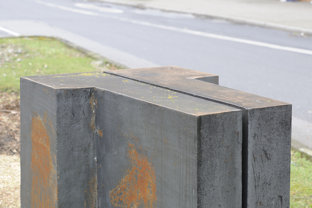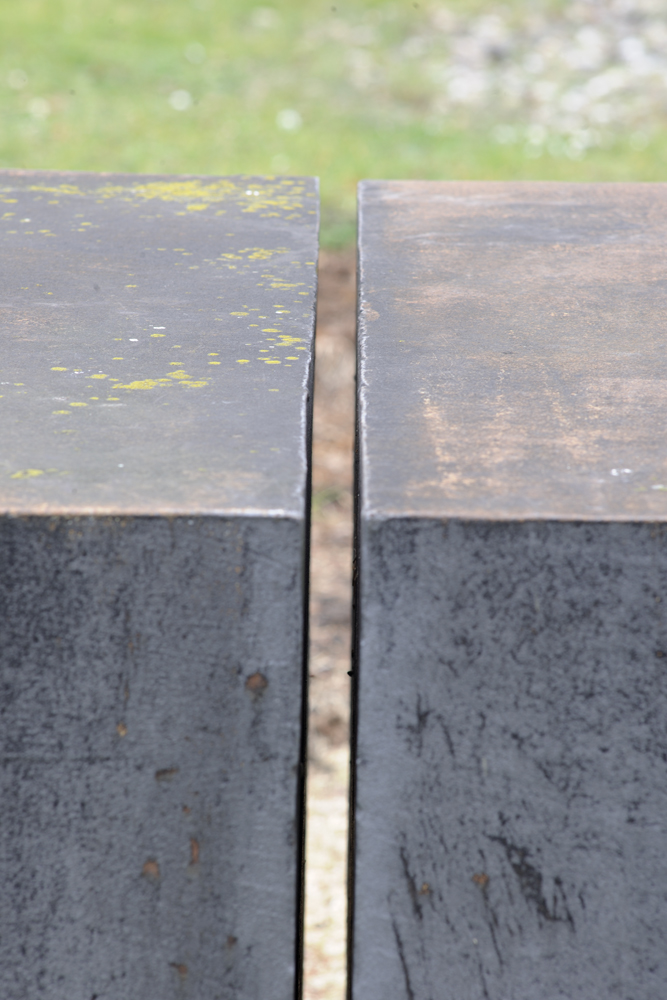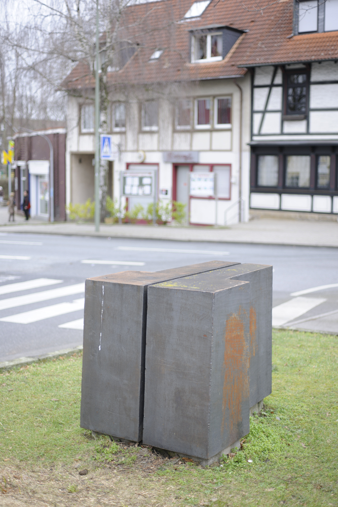 Eine der im Rahmen des Symposiums entstandenen Arbeiten ist die zweiteilige Skulptur von Abraham David Christian, der an der Düsseldorfer Kunstakademie bei Joseph Beuys studiert und vor allem reduzierte und konzentrierte Werke aus vergänglichen Materialien wie Erde und Papier geschaffen hatte. Die Skulptur besteht aus zwei L-förmigen Stahlkörpern, die spiegelsymmetrisch zu einem T zusammengestellt wurden, wobei ein mittlerer Spalt zwischen beiden Elementen verblieb.
