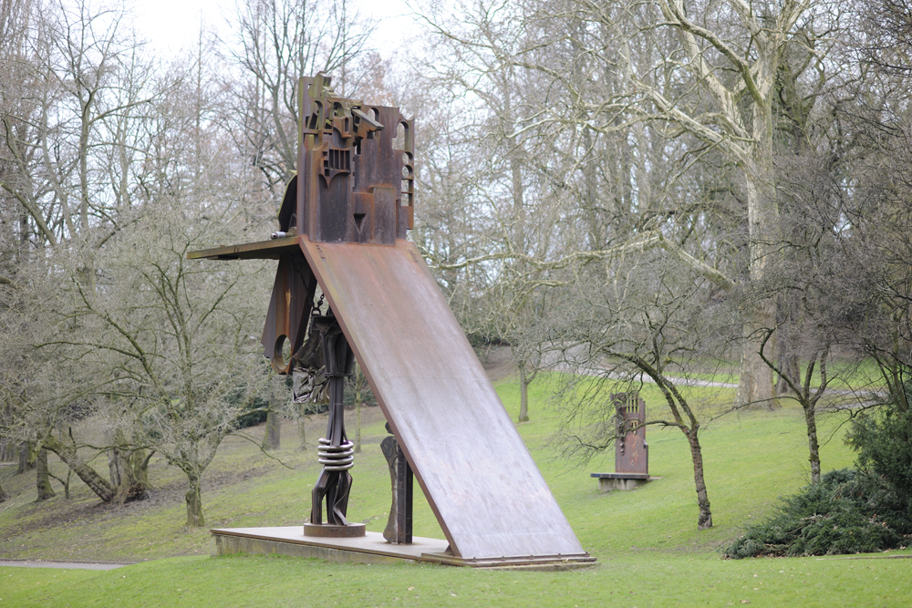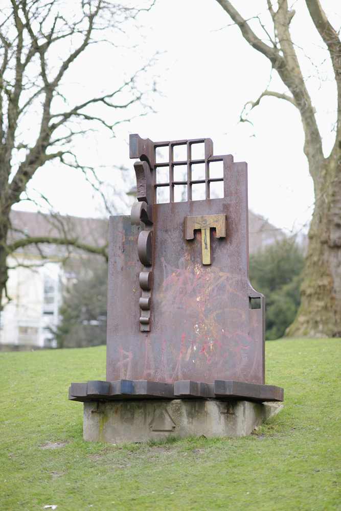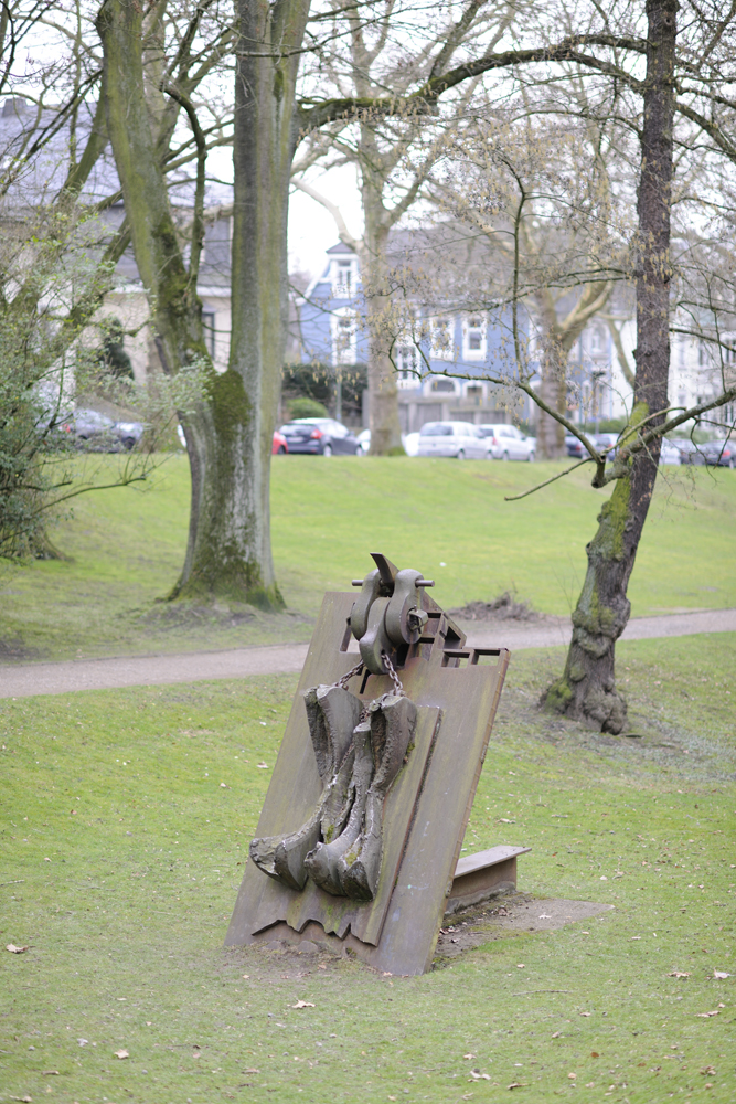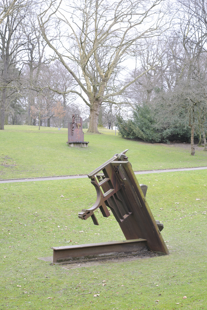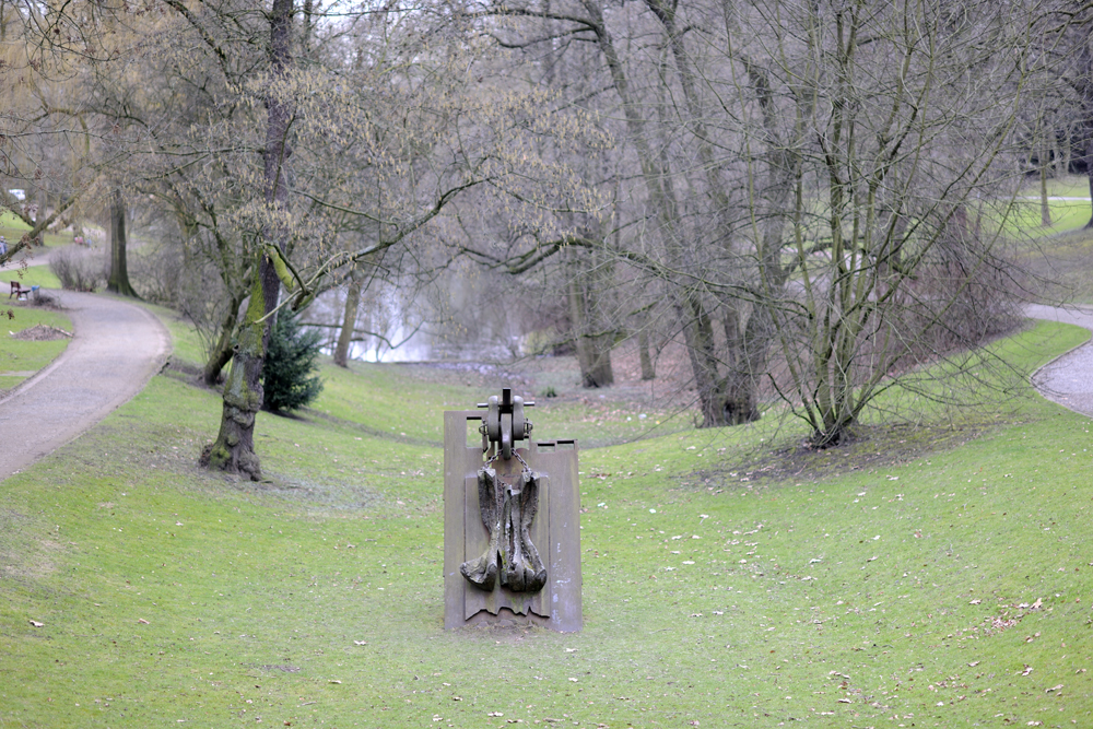Als komplexe und wuchtige Assemblage erhebt sich die dreiteilige Stahlskulptur des tschechischen Bildhauers Ales Veselý auf einer hügeligen Grünfläche des Bochumer Stadtparks. Entstanden ist die vom Künstler nachträglich als „Iron Report“ betitelte Arbeit nach über 300 Skizzen und Entwürfen während einer viermonatigen Realisierungsphase im Rahmen des 1. Bochumer Bildhauersymposiums.