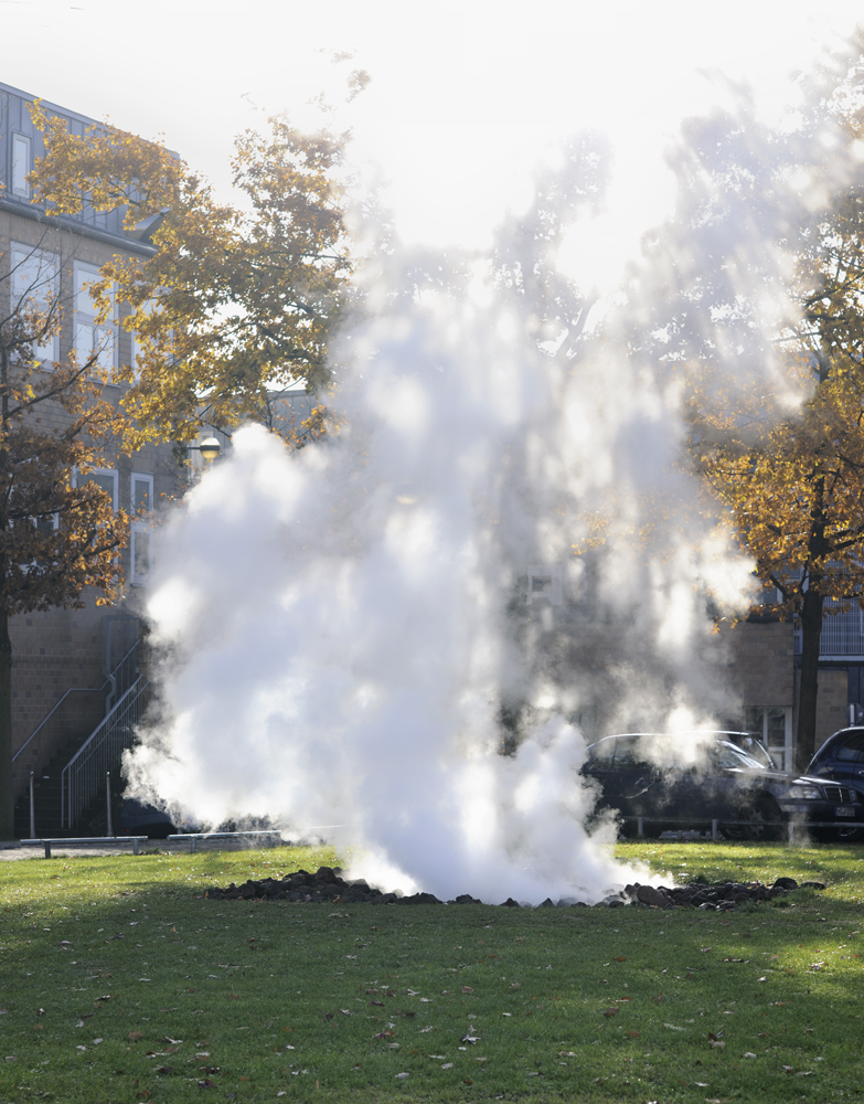 Es gibt kein materielles Werk mehr, sondern Dampfschwaden, die aufsteigen, sich als Wolken oder Nebel formieren und wieder vergehen. Sie sind flüchtig und ungreifbar, lassen sich nicht festhalten oder „besitzen“ und eröffnen dennoch eine völlig neuartige Wahrnehmung des Ortes und zahllose Assoziationen. Sie mögen von heiligen heißen Quellen der Antike ausgehen bis zu Leonardo da Vincis Empfehlung an die Künstler, die Wolken zu beobachten; von der Erfindung der Dampfmaschine bis hin zu Caspar David Friedrichs „Wanderer über dem Nebelmeer“.