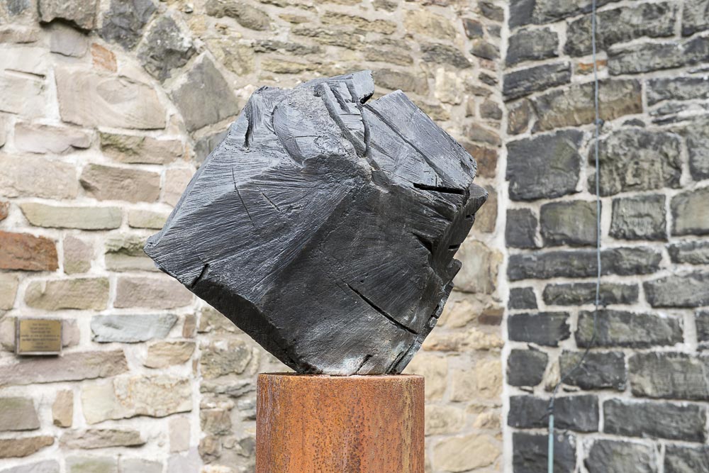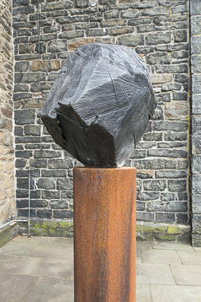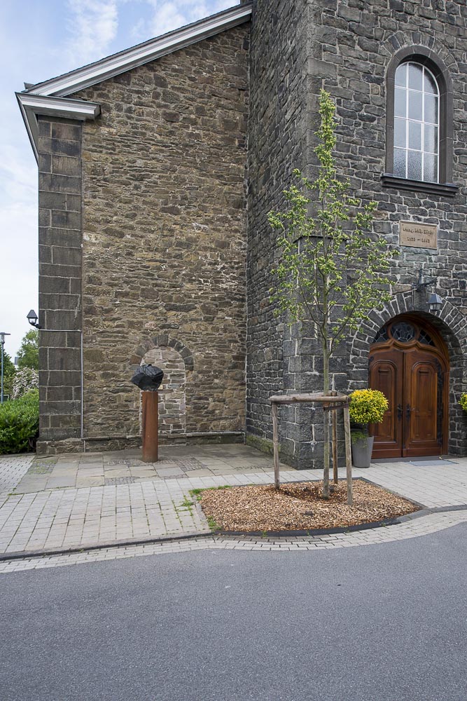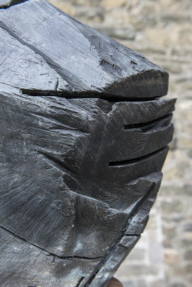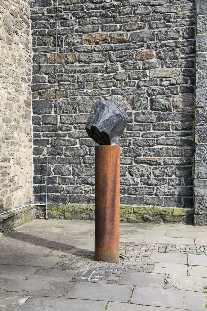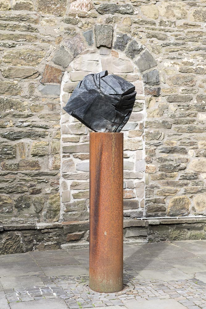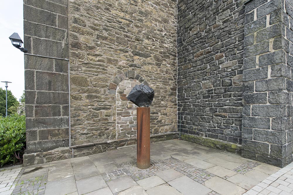 Auf einer runden Stahl-Stele in einer Nische neben dem Turm der Martinikirche befindet sich eine Skulptur aus der Werkgruppe „Köpfe“ des Bildhauers Erwin Wortelkamp. In dieser Werkgruppe arbeitete der Künstler die Skulptur aus einem Baumstamm so heraus, dass sie sich ohne weitere Bearbeitung behaupten kann. Die „Köpfe“ sollen eine Beziehung zwischen der Architektur, bei der ein Schlussstein einem Kopf vergleichbar ist, und dem menschlichen Körper herstellen. Auch die einem menschlichen Körper entsprechende Höhe trägt zu dieser Analogie bei. Die Skulptur wurde in Bronze gegossen, nachdem sie aus dem Baumstamm herausgearbeitet worden war, was der Künstler mit einem Geburtsprozess verglich. Die Struktur des Holzes bleibt auch im Bronzeguss erkennbar und wird durch die schwarze Patina verstärkt. Nach der Ausstellung „Zwischendrin“ konnte die Skulptur mit Unterstützung der Kunststiftung NRW angekauft werden.